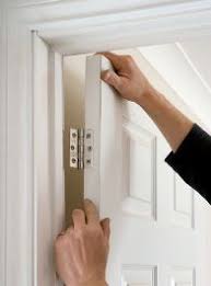 1. Make sure that the door lining or frame is properly prepared, which means it needs to be square and level. You need to assess whether the door swings in or out, if it’s a room off a hallway or landing, the door usually swings inwards. If you are replacing a front door with one of the sturdy external oak doors available, that would normally swing inwards as well. Next, fit your combination square to the door’s edge and mark lines at each corner of the frame, about 3 inches up from the floor and 3 inches down from the top.